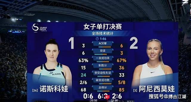 决胜盘的较量异常激烈。诺斯科娃在首局逼出了破发点,但阿尼西莫娃成功化解,艰难保发后还忍不住怒吼一声。接下来的比赛,阿尼西莫娃在第6局完成破发,以4-2领先。诺斯科娃似乎已经无法跟上阿尼西莫娃的节奏,逐渐被动起来。到第8局,她的发球局再次失守,最终以2-6输掉决胜盘,阿尼西莫娃赢得了比赛。