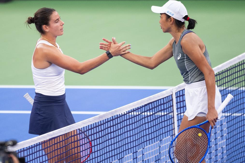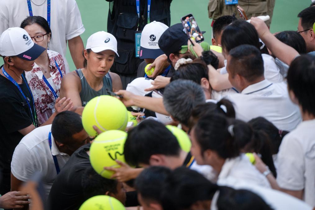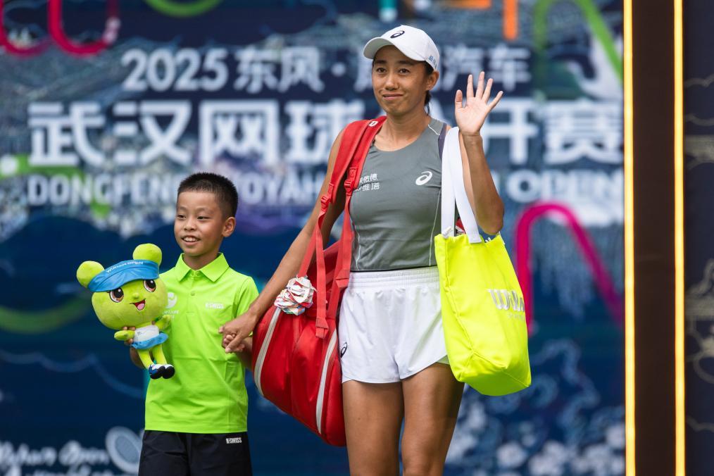当日,在2025年WTA武汉网球公开赛女子单打首轮比赛中,中国选手张帅2比1战胜美国选手纳瓦罗,晋级下一轮。
